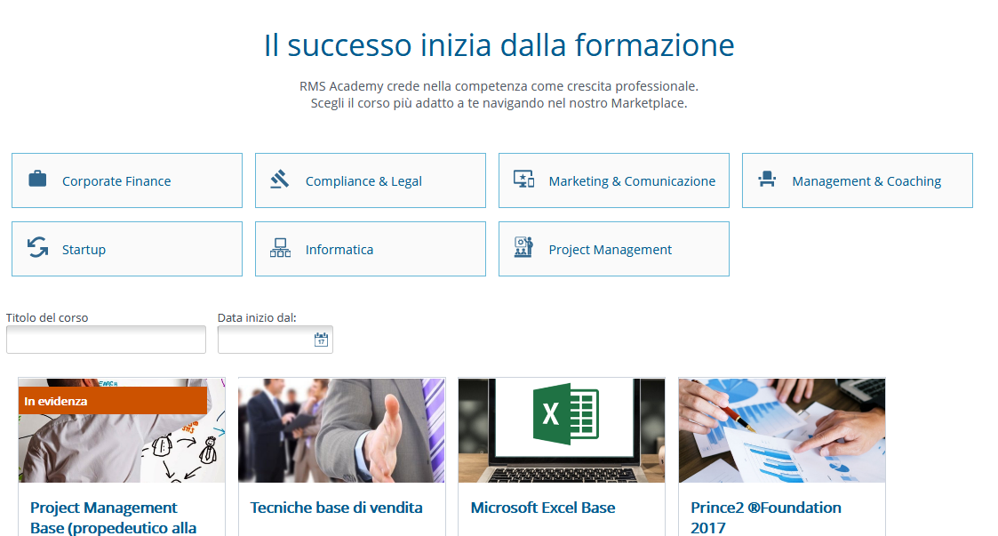 RMS Academy è una Scuola di Alta Formazione Manageriale e Professionale che nasce a Roma nel 2012. Hanno scelto PigrecoOS per la totale gestione di corsi, customer care e sito.